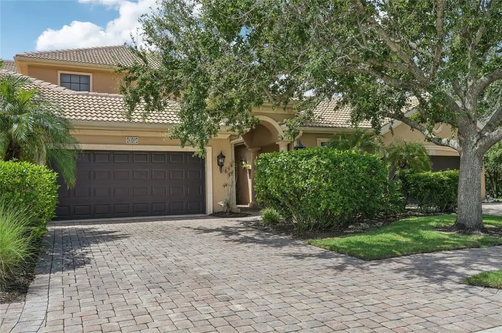 Freshly painted and move-in ready, this Mediterranean-inspired townhome in Bougainvillea Place feels like a single-family home, without sacrificing the convenience of a low-maintenance lifestyle. Tucked inside the gates of this quiet, resort-style community, where homes rarely come on the market, you’ll find the only townhouse in the neighborhood with its own private entryway. From the moment you step into the pavered courtyard, surrounded by lush greenbelts and tranquil water views, you’ll understand why this is Florida living at its finest without CDD fees. Inside, soaring ceilings and crown molding frame a thoughtfully designed layout. The gourmet kitchen is the heart of the home, with rich hardwood cabinetry, granite countertops, stainless steel appliances, and a large island with a high-top breakfast bar. A convenient half bathroom nearby ensures guest comfort. The first-floor owner’s suite is a true retreat, complete with hardwood floors, double walk-in closets, and a spa-like bathroom featuring a soaking tub, dual vanities, and a glass-enclosed shower.
