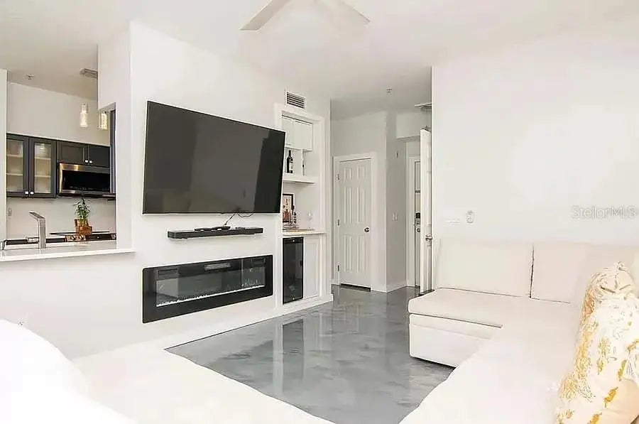 This ground floor Fully Furnished (can be leased unfurnished as well, ask for price) 1 bedroom, 1 bathroom condo located in highly desirable Ybor city is Move-In Ready! Modern finishes throughout: epoxy floor, New stainless steel appliances, brand new kitchen, built-in wine bar with fridge, electric fireplace, 60 inch Smart TV, recessed lighting, all great for entertaining. The updated bathroom, boasts dual sinks, LED vanity mirror, and a glass tiled shower all designed with a sleek, contemporary feel. The private home office included desks, making it ideal for remote, work or study. The bedroom offers a queen size bed, walk-in closet with mirror doors, built in drawers, and shoe storage. This unit also has its own washer and dryer, smart thermostat and a balcony to enjoy the outdoor weather. Resort style community with two pools, spa, fitness center, clubhouse, lounge, theater room, game room, outdoor grilling, and more. Walk to shops, dining, concerts, and markets. Easy access to free trolley to channel side district, Sparkman wharf and more.