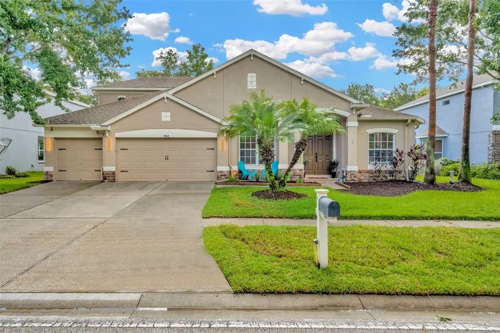 WATCH VIRTUAL TOUR! MOTIVATED SELLER! PRICE IMPROVEMENT!! SHOWCASING this home in award winning Wilderness Lake Preserve as Resort-Style Living and designed after Walt Disney's Fort Wilderness. This beauty located on a CONSERVATION LOT has been refreshingly UPGRADED as of 2024-2025. A 3264 Sq. Ft. 5/4/3 open split floor plan home with an elegant glass paneled French door office, complete with a NEW ROOF, 2 NEW A/C UNITS & ductwork, new light fixtures, new fans, and new flooring throughout majority of the freshly painted (interior) home. At the heart of this wonderful home is its spectacular kitchen which features UPGRADED CABINETS, farmhouse sink & garbage disposal, built-in pantry, double built-in trash cans, window seating dining nook, & glistening QUARTZ COUNTERTOPS with a spacious waterfall eat-in design leading into an open concept living room perfect for entertaining or enjoying scenic views with glass slider access to the screened and covered large lanai. The LARGE enchanting Owners Suite is located on the first floor opposite the bedrooms and includes a full ensuite complete with huge walk-in closet, dual vanities, garden tub, & separate walk-in shower. The Jack & Jill bathroom features a new and stylish vanity, & a shower-tub combo with ceiling height tiling. The roomy upstairs loft has a it’s own storage room, bathroom, & bedroom. Additional upgrades include, but not limited to, crown molding, recess lighting, whole home water softener system, etc. Backyard is completely fenced. Satisfy your thirst/hunger with weekly food trucks. Impressive amenities including an epic lake front recreation complex stylized after WALT DISNEY'S FORT WILDERNESS, fishing dock with multiple boats provided, world-class fitness center, lagoon and heated lap pool, outdoor spa, saunas, movie theater, tennis, basketball and sand-volleyball courts, multiple parks and playgrounds, planned events, nature center, party room, business center, WIFI and summer camp-like programs, club house Nail Salon, & more! This stellar home is a rare opportunity that will surely delight.