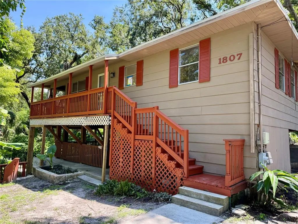 Talk about one of the more unique properties in Seminole Heights. This stilt house is tucked away off the main road in what almost feels jungle like. Beautiful plants overlooking the spring that runs through the middle of the property. You can hear the water going by at a slow rate on the balcony or you can sit right next to it in the gazebo