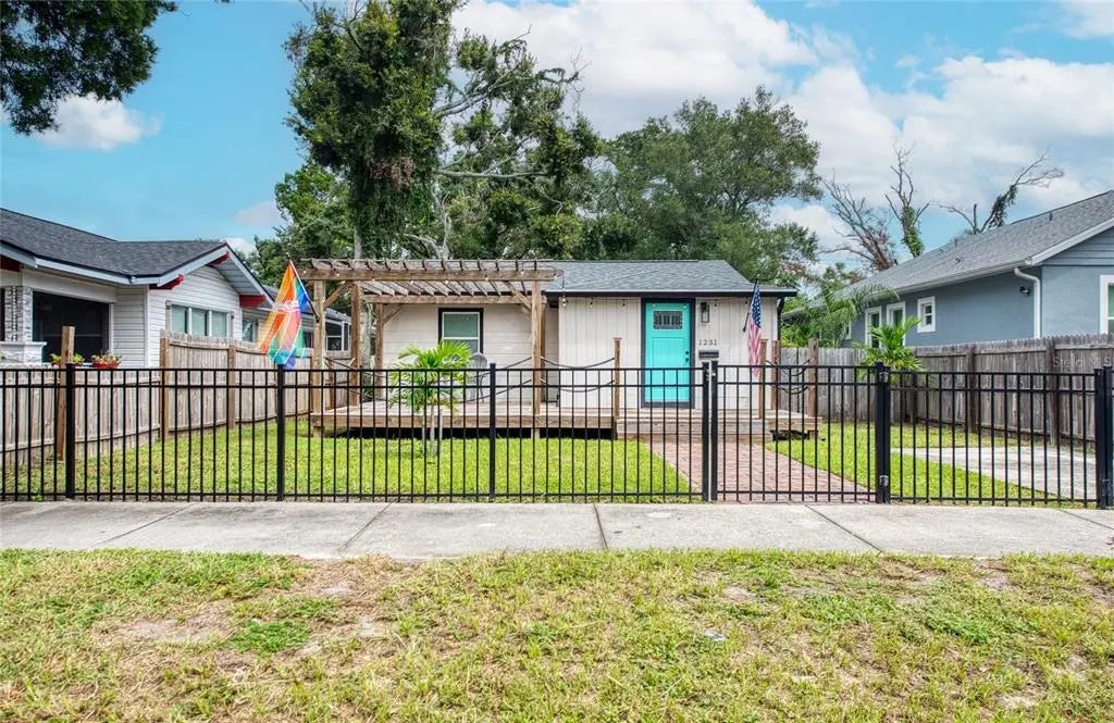 Under contract-accepting backup offers. Welcome to this beautifully updated, move-in ready home offering the perfect blend of modern convenience and timeless charm! This partially furnished residence features 2 bedrooms, 1 bathroom, a versatile flex space, and an interior laundry/storage room. As you enter, you’ll be greeted by an expansive, colorful foyer—large enough to double as a work-from-home area. The spacious living room flows seamlessly into the kitchen, creating a warm, inviting layout ideal for everyday living and entertaining. The kitchen boasts stainless steel appliances, white shaker cabinets, and granite countertops. Both bedrooms are filled with natural light, while the tastefully updated bathroom and laminate flooring throughout add to the home’s appeal. The interior laundry room provides abundant storage, a full-size washer and dryer, and a convenient wash tub. Outside, enjoy a welcoming front porch, or retreat to the fully fenced backyard—perfect for entertaining, gardening, or simply relaxing. Ideally located in the heart of St. Pete, you’re just minutes from the Waterfront, Warehouse Arts, Edge, and Grand Central Districts—offering endless dining, shopping, and entertainment options right at your doorstep. The property is located in flood zone “X” and a non-evacuation zone, adding peace of mind. Don’t miss this opportunity to experience the best of St. Pete living—schedule your private tour today! Check out the 3D Tour: https://my.matterport.com/show/?m=uCX9iyFrc3e&mls=1