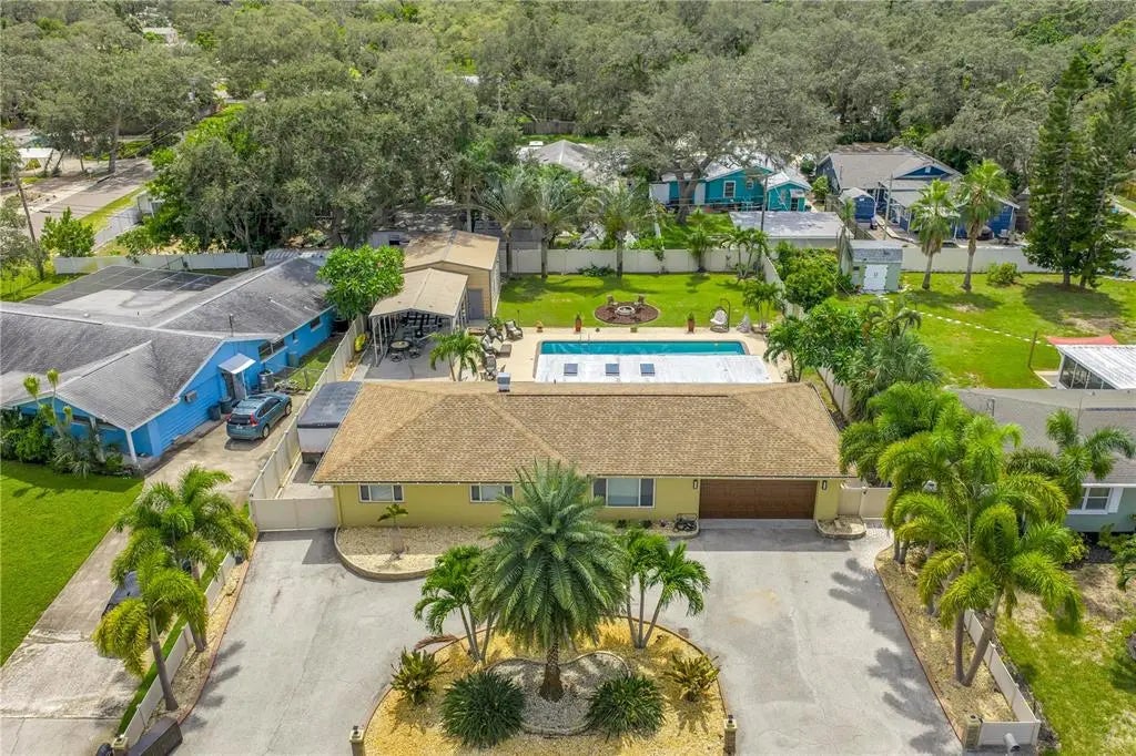 The two bedrooms are generously proportioned with dual closets and ceiling fans. All bedrooms have the desirable bamboo flooring. The main bath features beautiful tile, custom cabinetry, and a whirlpool tub. The huge fenced-in backyard is family-friendly and a place for your pet to roam freely. Cool off in this fabulous, 10-foot deep, 40-foot-long x 17-foot-wide pool for your pleasure! A fire pit during the cool evenings brings you enjoyable memories.. This amazing home is situated in Unincorporated Pinellas, just minutes from Maderia Beach. Perfect for that special buyer seeking the opportunity to store your boat and RV, too. Features a huge workshop set up with a 200-amp service, a coiling garage door, and window air conditioning. Ideal for woodworking enthusiasts, mechanics, and others. Additional features include: Magic Glass hurricane-rated windows with screens throughout the home. New AC, Dishwasher, Disposal.Matching stainless steel appliances.Custom cabinetry. Newer pool pump, washer, dryer, laundry sink, and microwave. Lots of storage. NO FLOOD , NO EVACUATION 52.5 Feet Above Sea Level! Proximity to many beaches! Lots of shopping, movie theater, post office, golfing, and fishing! No restrictions on renting!