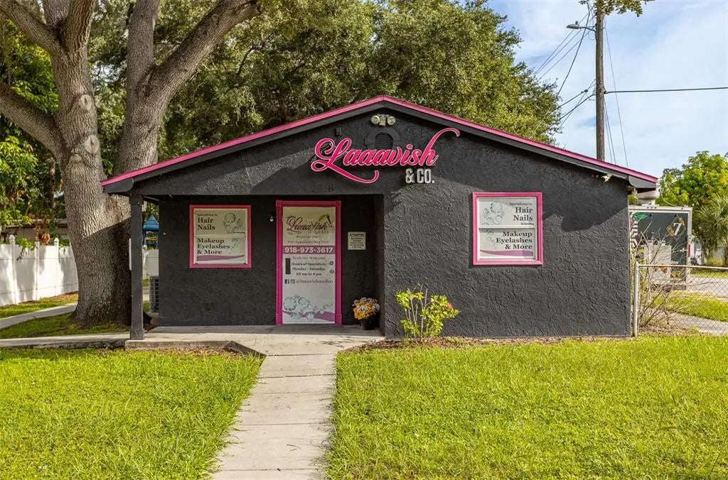 This 678 sqft standalone CORNER LOT commercial building includes a new A/C unit, a security system and durable & stylish epoxy floors. Currently, there are salon booths in the main area, along with washing & drying stations. The floorplan also includes two private rooms that could be used for eyelash services, makeup, nails, waxing, facials and more. The building also includes an ADA-compliant bathroom.