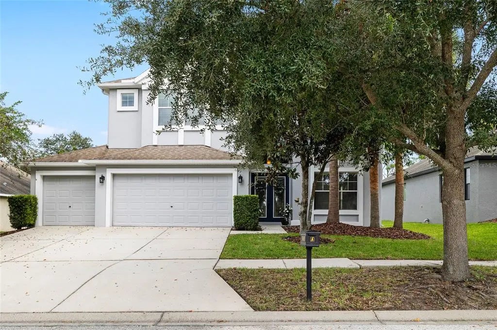 Welcome to Starling! Zoned for ALL A-RATED SCHOOLS! This stunning traditional style two-story home features 4 bedroom, 2.5 bathrooms, and a 3-car garage! Upon entry, you will be greeted with a grand foyer, which showcases SOARING CEILINGS, HARDWOOD FLOORS, AND AN ELEGANT STAIRCASE. The high ceilings give the home a very spacious open feel, with plenty of space for endless possibilities. The first floor has a formal dining room and living room combo, separate family room which opens to the kitchen, breakfast nook, and a private office with a nearby half bathroom. The kitchen has many appealing features which include a CENTER ISLAND, STONE COUNTERTOPS, TILED BACKSPLASH, NEW STAINLESS-STEEL APPLIANCES WITH A GAS COOKTOP, WHITE CABINETS WITH CROWN MOLDING, AND AMPLE PANTRY SPACE! Upstairs, are the bedrooms and remaining bathrooms as well as a HUGE BONUS ROOM! The primary suite features an OVERSIZED WALK-IN CLOSET and an ensuite bathroom which includes a DOUBLE SINK VANITY, GARDEN TUB, & SEPARATE TILED WALK-IN SHOWER! The backyard is FULLY FENCED and has plenty of yard space, along with a covered back porch for outdoor seating, grilling & dining, or lounging. *Kitchen appliances 2025, fence 2025, Exterior paint and gutters 2021, Water heater replaced approx. 2022* The FishHawk Ranch community is FILLED with scenic ponds and trails, resort style amenities, clubhouses, parks and playgrounds! Make this wonderful home your own! Call today to schedule a private viewing!