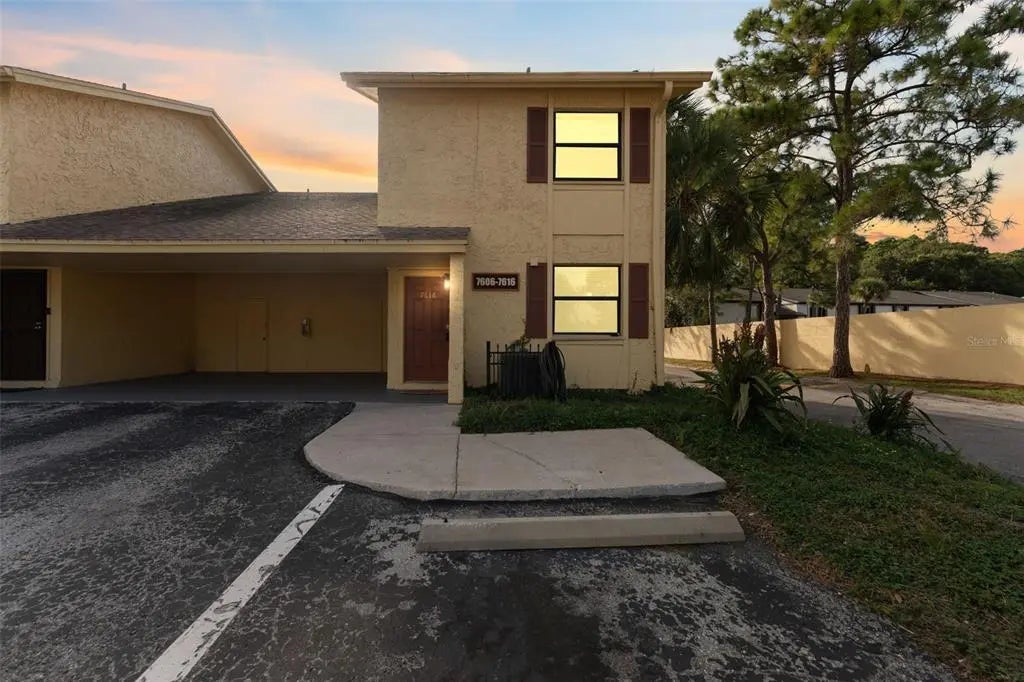 This 3-bedroom, 2.5-bath end-unit townhome features an updated kitchen with granite countertops, stainless steel appliances, and plenty of cabinet space. The main level offers tiled floors, while the upstairs has spacious bedrooms with laminate flooring and walk-in closets. The master suite includes dual walk-ins and a bathroom with ample linen storage. Additional highlights include a rare fenced patio, an inside laundry closet, a carport space, and extra parking directly in front. Included utilities are landscaping, water/sewer, and trash removal.