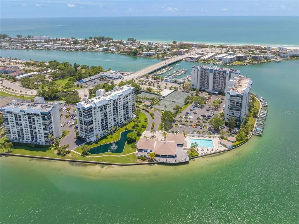 Motivated seller and willing to rent back for a year! Allowing you instant rental revenue. All assessments paid in full and Milestone Inspection completed! Welcome to your dream beach condo! Located in the highly desirable Yacht & Tennis Club of St. Pete Beach, this beautifully updated 2 bedroom, 2 bathroom condo offers stunning sunset views from its 8th-floor. As you enter the building, you’ll be greeted by a newly updated lobby. Take the elevator to the 8th floor, where beach living awaits you. Step into an open concept kitchen with a large island perfect for hosting gatherings, stainless steel appliances, granite counters, and shaker style cabinets. This kitchen seamlessly flows into the dining area and living room, making it ideal for entertaining friends and neighbors. The spacious primary bedroom features a walk-in closet and an updated bathroom with a stand-up shower and a large vanity with ample storage. The convenience of an in-unit washer and dryer is also included. This condo is being sold furnished and comes with storm shutters for added protection. The Yacht & Tennis Club community defines luxury living. Enjoy peace of mind with a 24-hour guard at the gate. Engage in activities on the Har-Tru tennis courts, pickleball courts, or shuffleboard. Relax in the large, heated pool located right on the Intracoastal Waterway. The updated clubhouse is perfect for entertaining guests, and the attached marina offers boat slips for purchase when available. Just a short walk from popular St. Pete Beach and local restaurants, this condo offers true luxury beach living. Don't miss your chance to own a piece of paradise